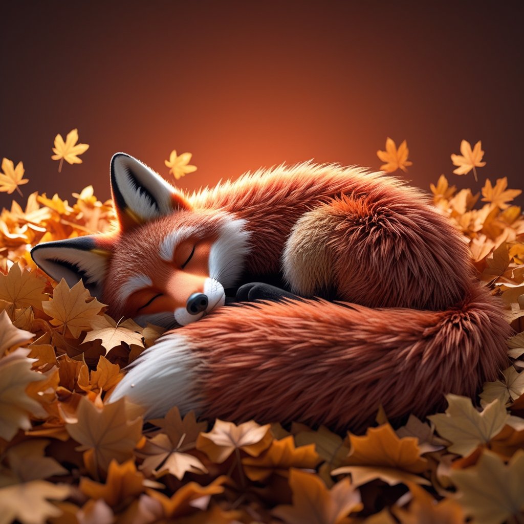 A beautifully serene scene of a red fox curled up in a cozy nest of autumn leaves. The warm hues of orange, gold, and brown blend harmoniously, capturing the peaceful essence of fall. This digital artwork radiates comfort, tranquility, and the beauty of nature’s quiet moments. The fox’s soft fur and gentle expression make it an enchanting addition to any NFT collection.
