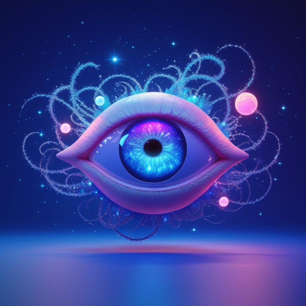 A surreal, celestial eye floating in a cosmic realm, surrounded by swirling galaxies and luminous orbs. This digital artwork represents the gateway to infinite knowledge, blending mysticism and futuristic aesthetics.