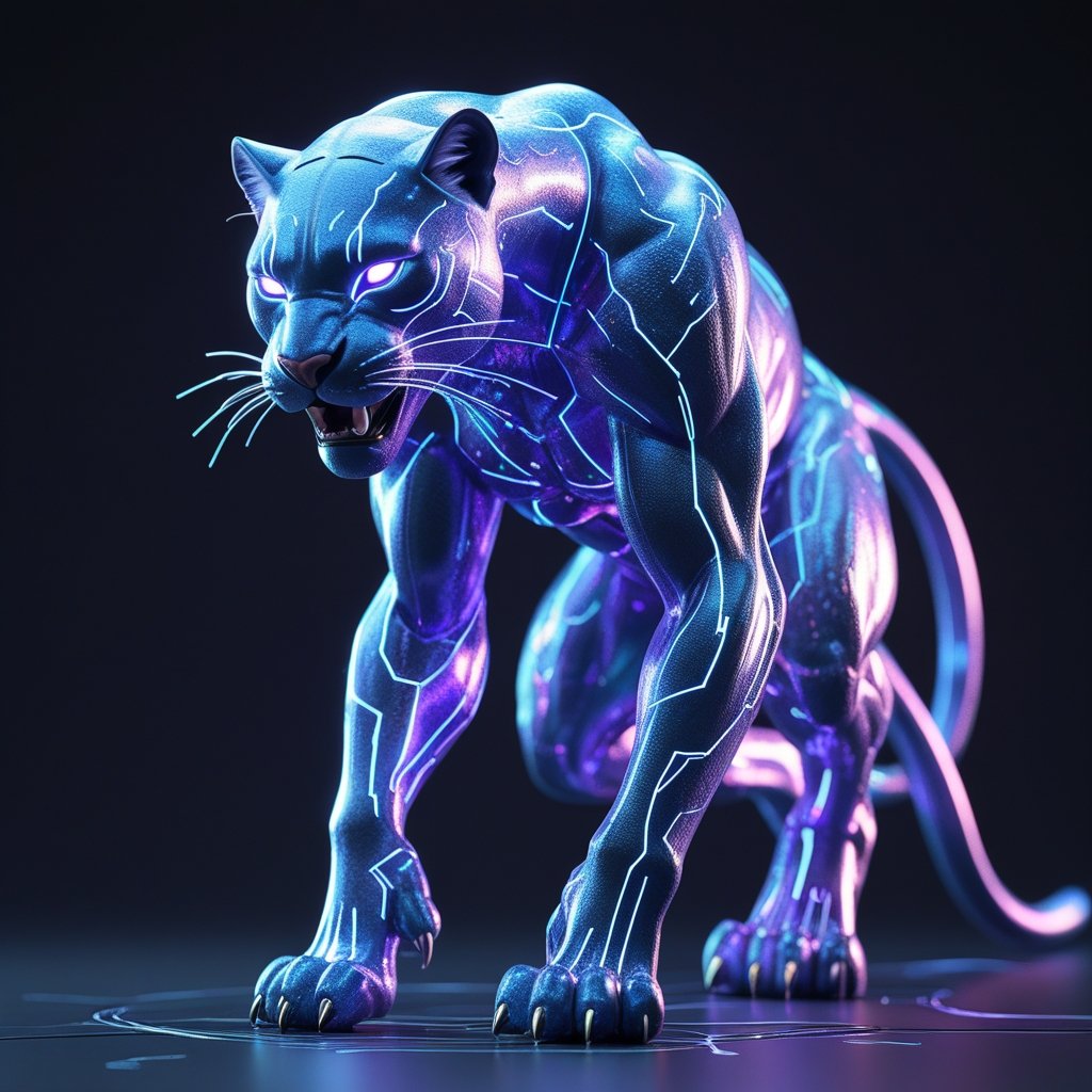 A sleek and powerful panther infused with glowing neon circuits, embodying stealth, agility, and digital prowess. This NFT represents the fusion of nature and technology, symbolizing strength and precision in the metaverse.