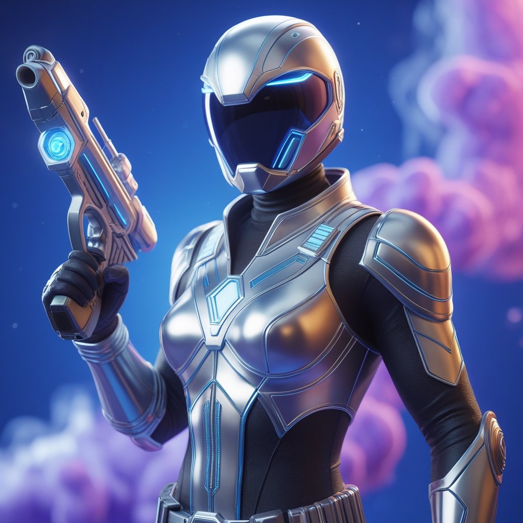 A sleek, high-tech warrior equipped with advanced armor and a plasma pistol, standing vigilant in a futuristic world. This NFT represents precision, speed, and the relentless pursuit of justice in a cybernetic age.