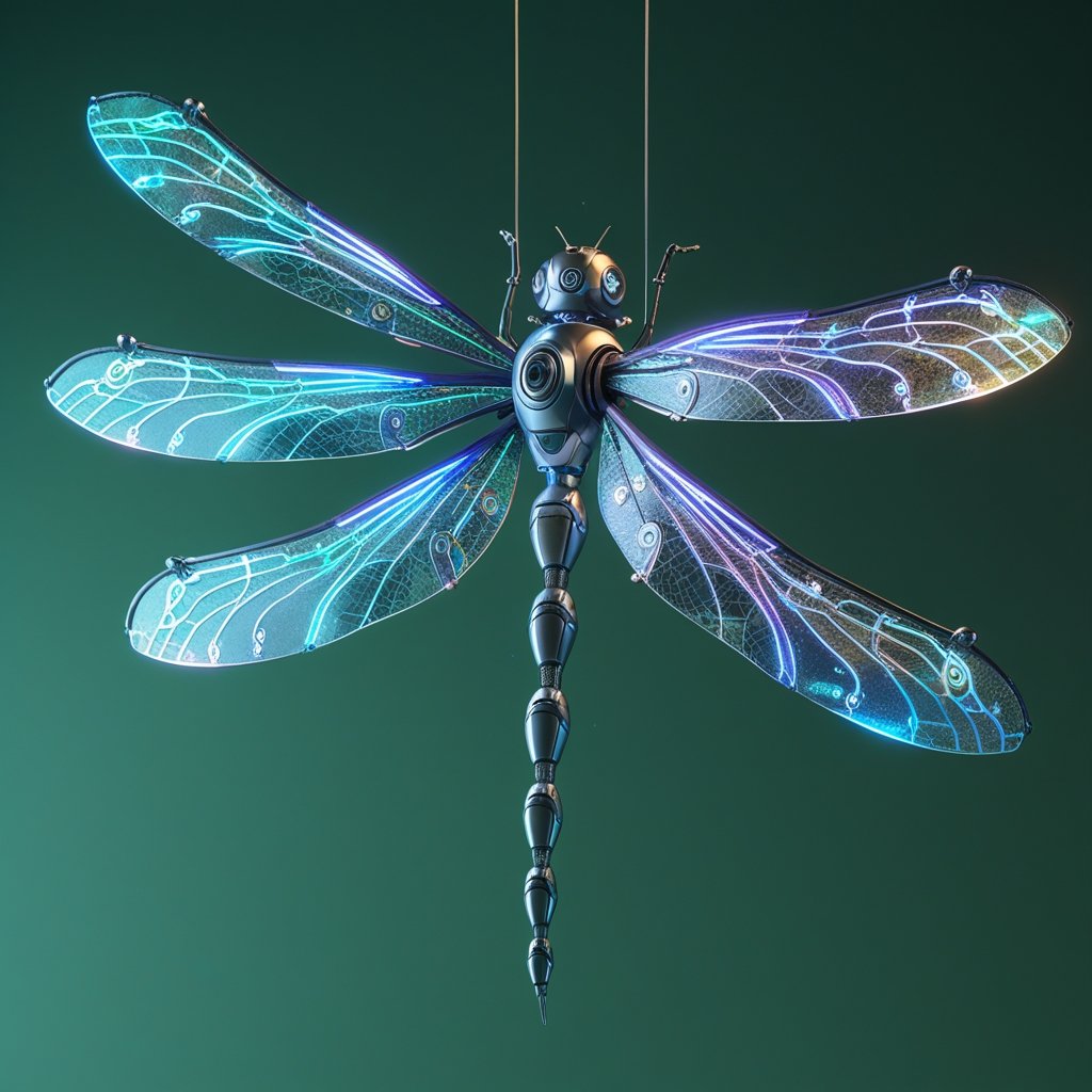 A stunning fusion of nature and technology, this cybernetic dragonfly showcases intricate mechanical wings that shimmer with neon circuitry. Floating effortlessly in a futuristic landscape, it embodies the perfect balance between organic beauty and advanced AI-driven design.