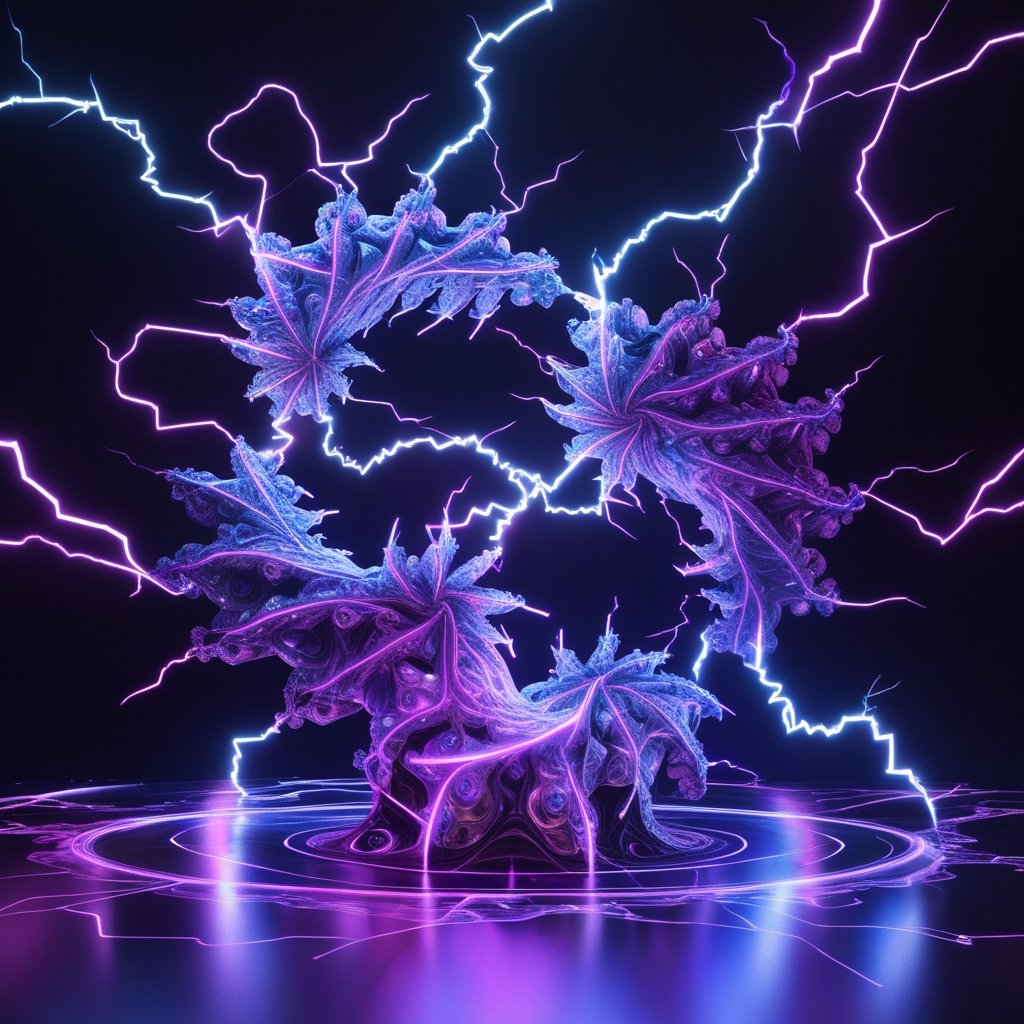 A mesmerizing digital artwork featuring intricate fractal formations crackling with electrifying neon energy. The fusion of glowing purple lightning and complex organic patterns creates an intense, high-voltage spectacle that embodies both chaos and order. This NFT is perfect for collectors who admire fractal geometry, futuristic energy, and digital surrealism.