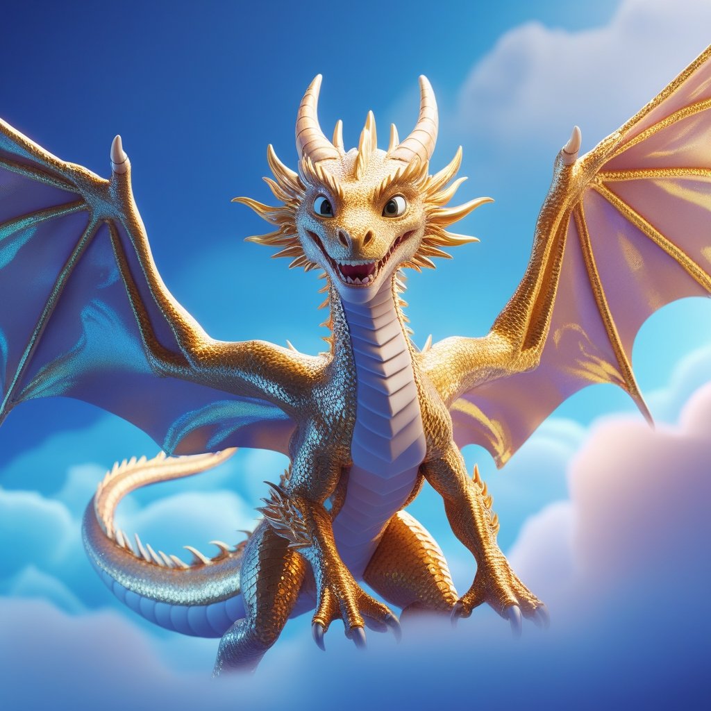 Golden Sky Guardian depicts a majestic golden dragon soaring above the clouds, embodying strength, wisdom, and celestial beauty. This artwork is a radiant symbol of hope and inspiration.
