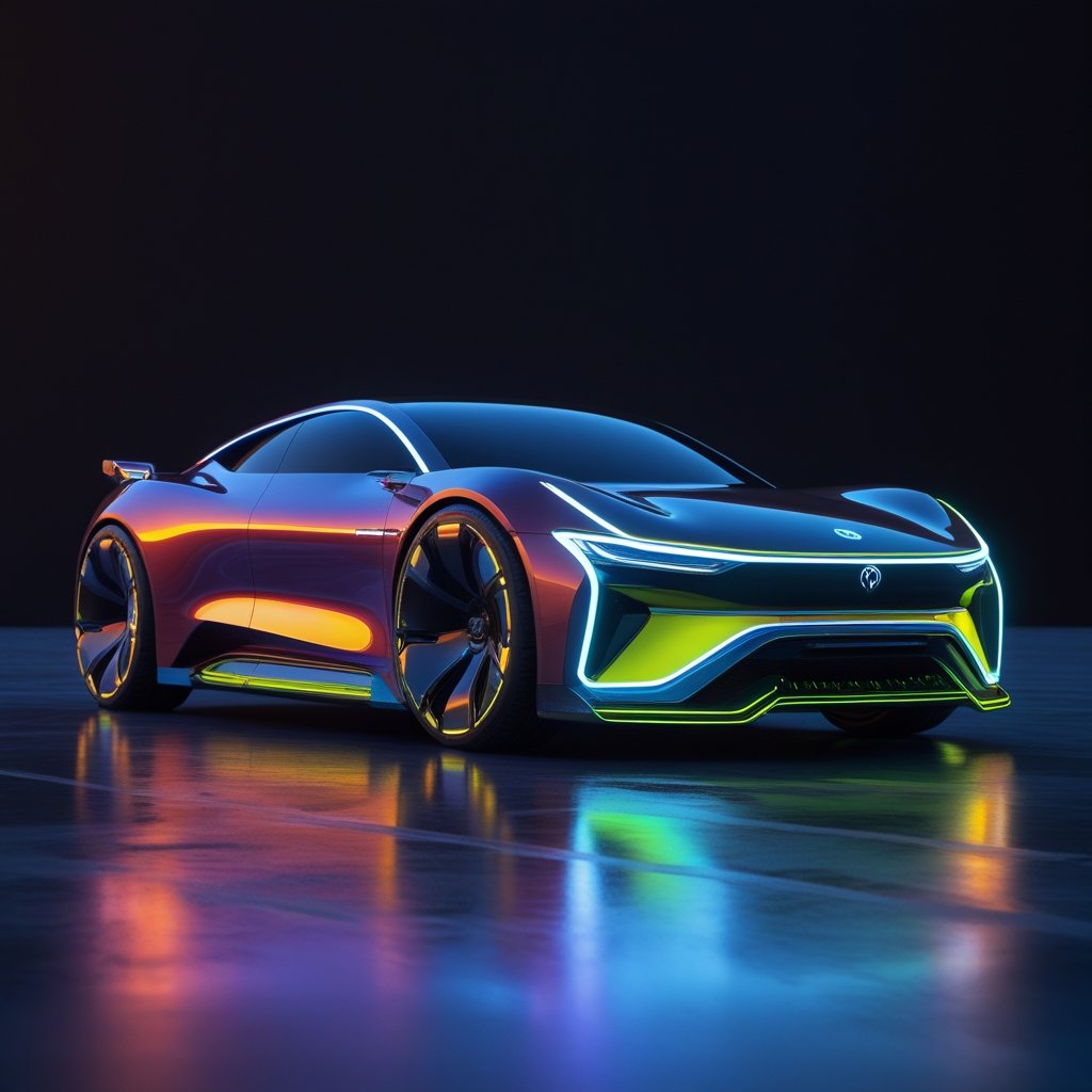 A sleek futuristic supercar glowing with vibrant neon accents under the night sky. This NFT captures the essence of speed, innovation, and cutting-edge design in a digital masterpiece.