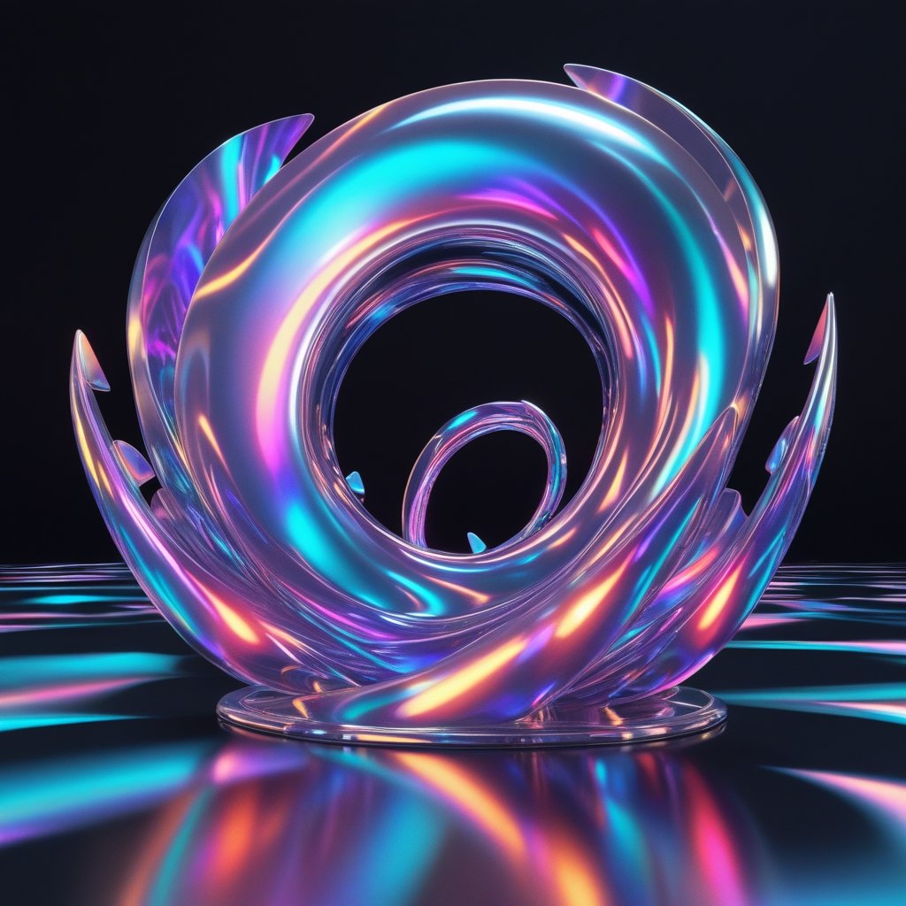 A stunning digital artwork featuring a fluid, iridescent vortex swirling with vibrant neon hues of blue, pink, and violet. The reflective metallic surface interacts beautifully with the surrounding light, creating an illusion of infinite motion and depth. This futuristic sculpture embodies the essence of energy, transformation, and abstract beauty—making it a perfect NFT for collectors who appreciate cutting-edge digital art.
