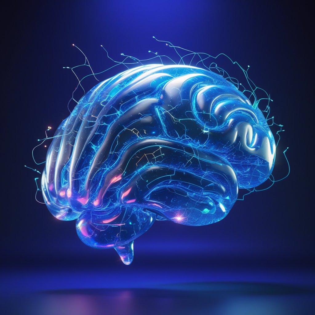 A futuristic, liquid-like brain infused with neon circuitry, representing the evolution of artificial intelligence and human cognition. This NFT symbolizes the interconnectedness of thought, technology, and the boundless potential of digital consciousness.