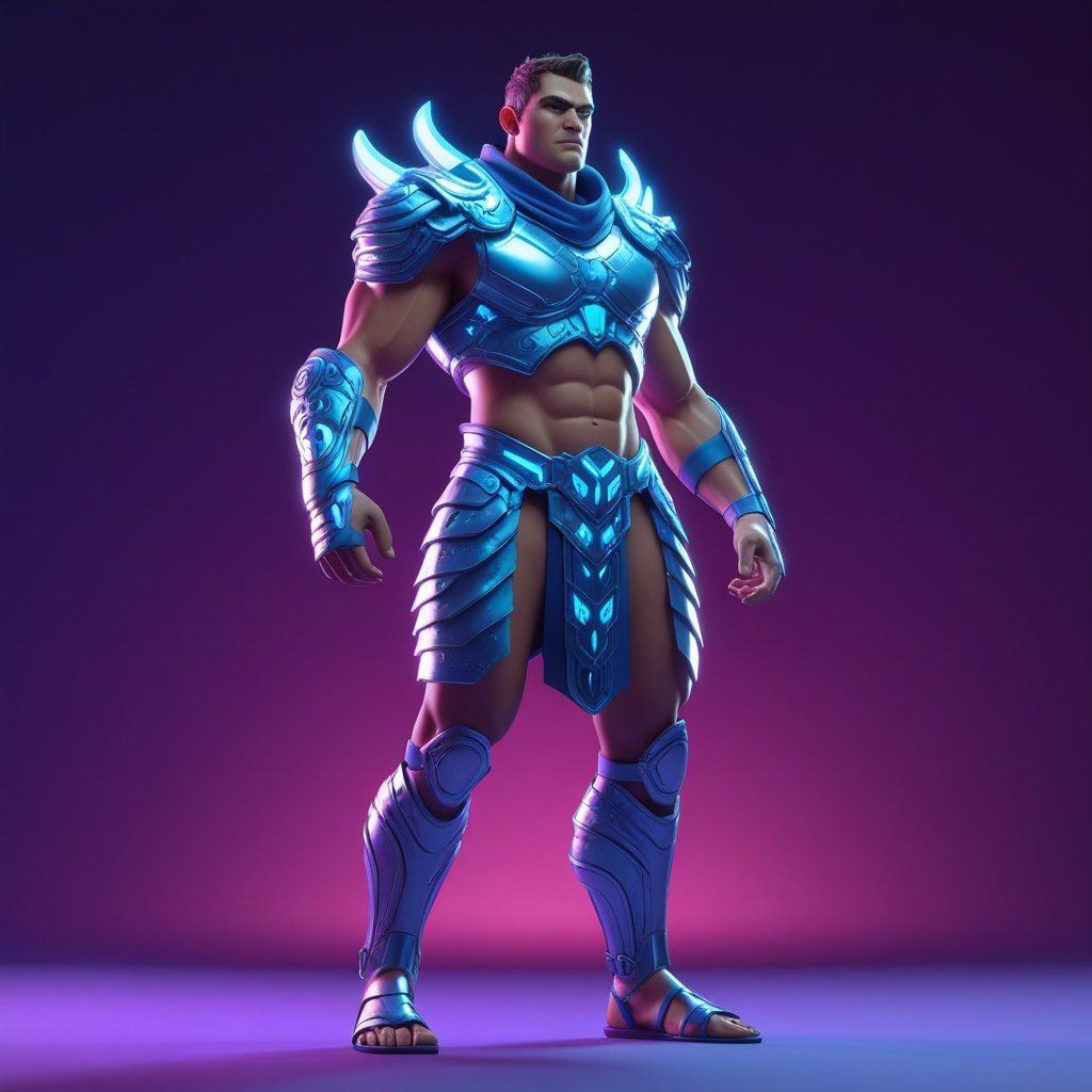 A mighty warrior clad in radiant, futuristic armor, exuding strength and divine energy. This NFT represents the perfect fusion of ancient battle prowess and advanced technology, standing as an unyielding protector of the realm.