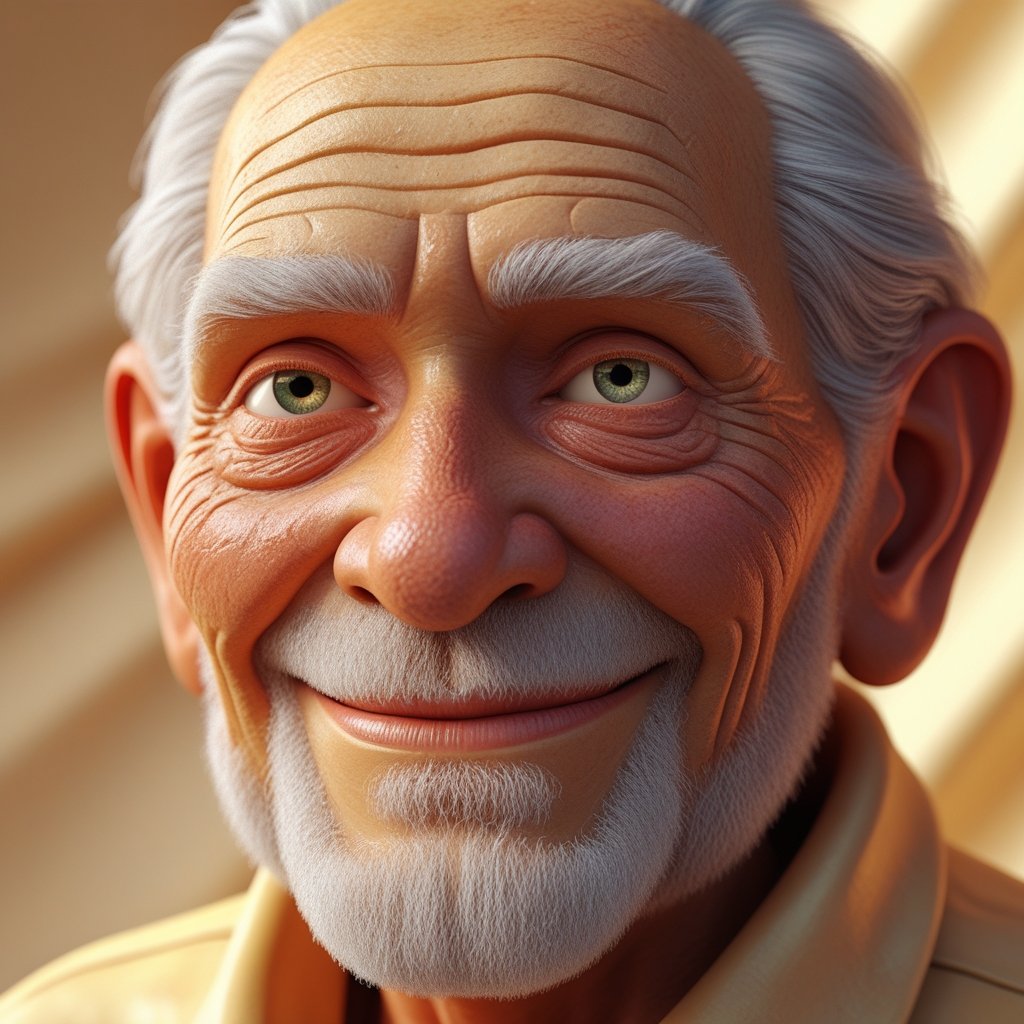 A warm, heartfelt smile from an elderly man who has seen the world through decades of change. His eyes gleam with kindness, his face etched with stories of laughter, love, and wisdom. This NFT captures the essence of a life well-lived, radiating positivity and serenity.